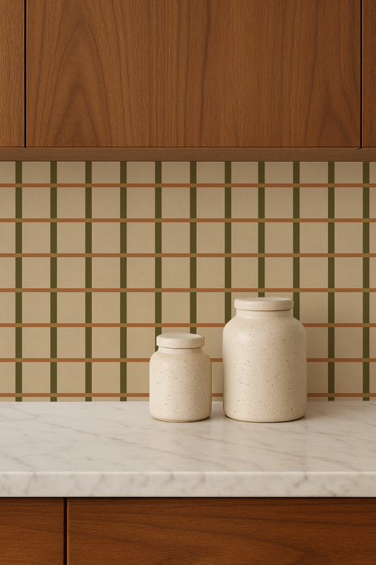 Ginnie Contact Paper, beige orange and dark olive