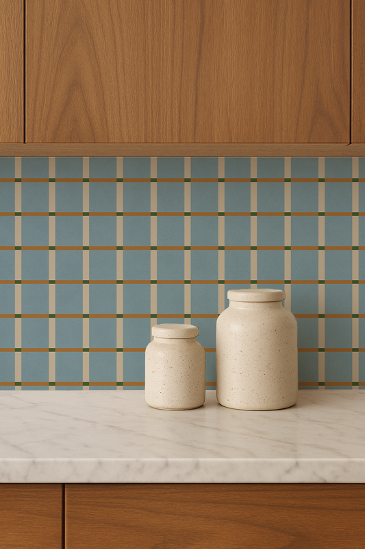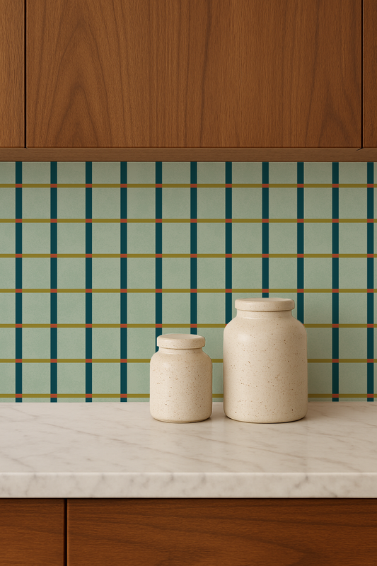 Ginnie Contact Paper, mint brown and blue