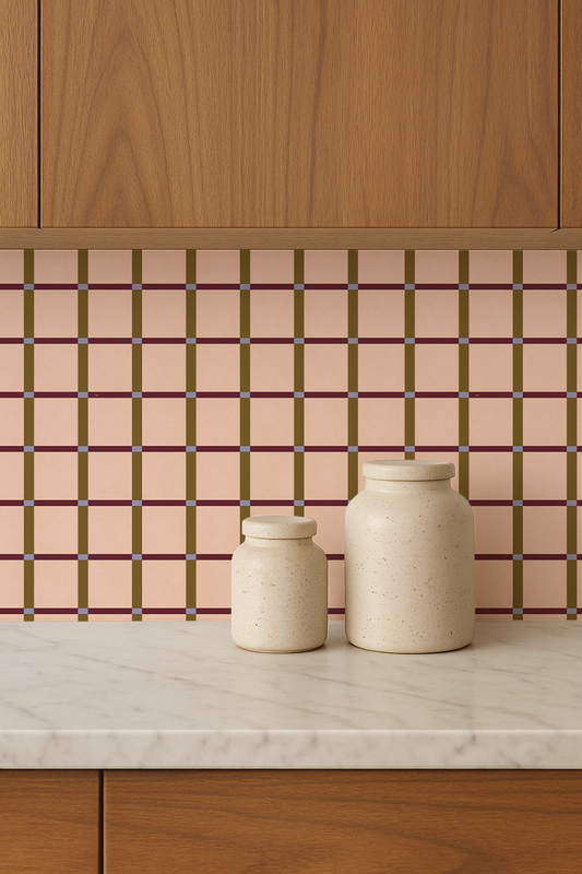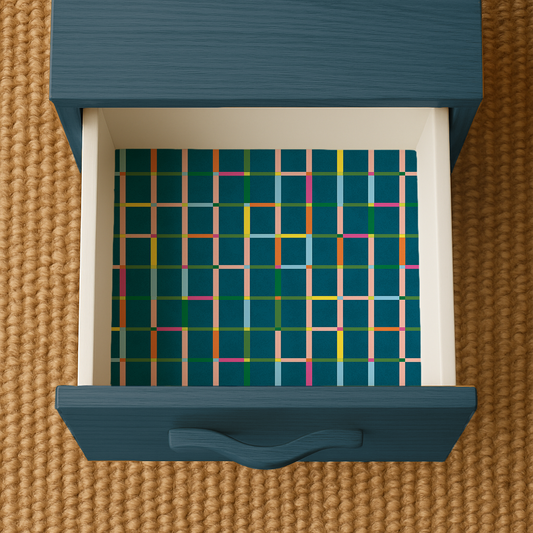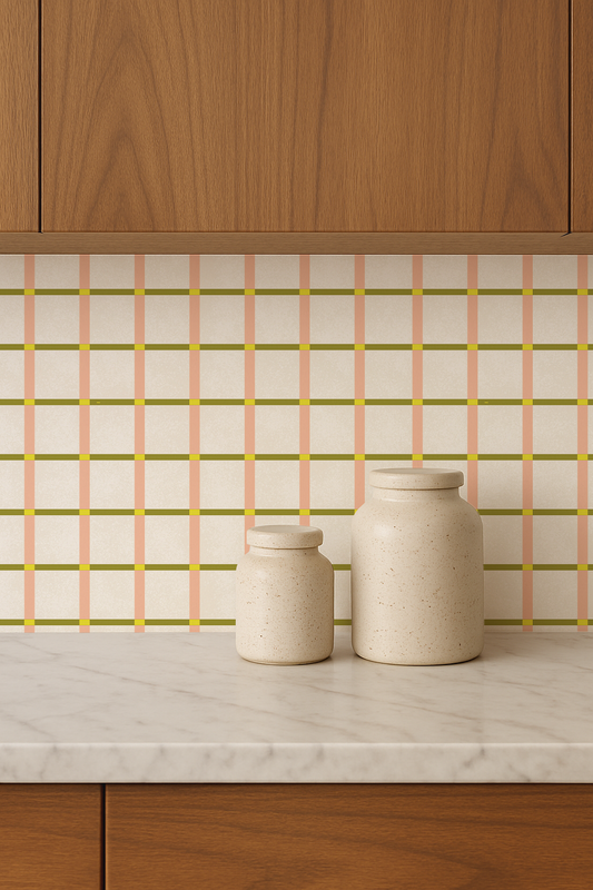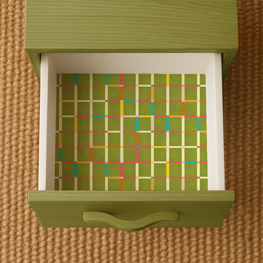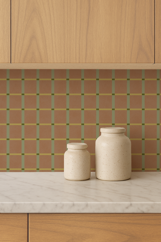 Ginnie Contact Paper, terra cotta mint and light chartreuse