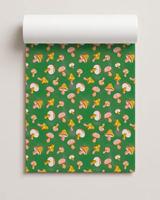 Yuletide Fungi Gift Wrap, green, yellow and peach