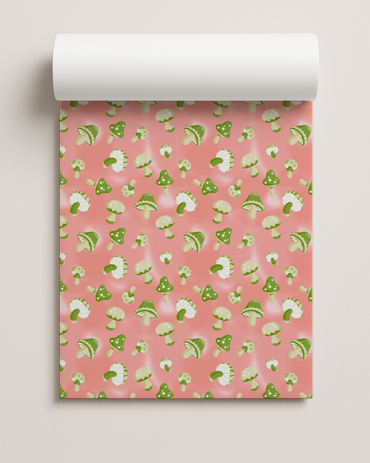 Yuletide Fungi Gift Wrap, mint, red and pink
