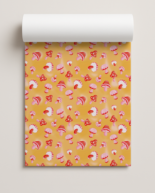 Yuletide Fungi Gift Wrap, yellow, red and pink
