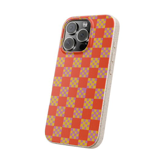 Checkered Quilt Phone Case - red orange, yellow and purple - Eco-Friendly, Biodegradable