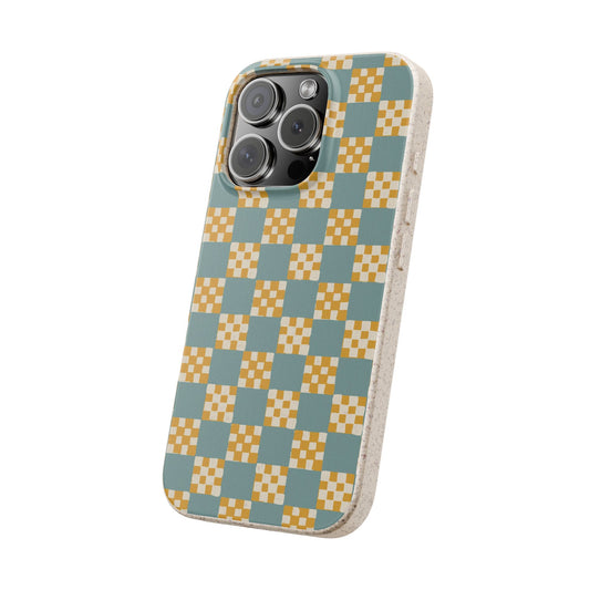 Checkered Quilt Phone Case - light blue, yellow and white - Eco-Friendly, Biodegradable