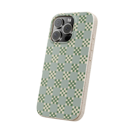Checkered Quilt Phone Case - mint, sage and white - Eco-Friendly, Biodegradable