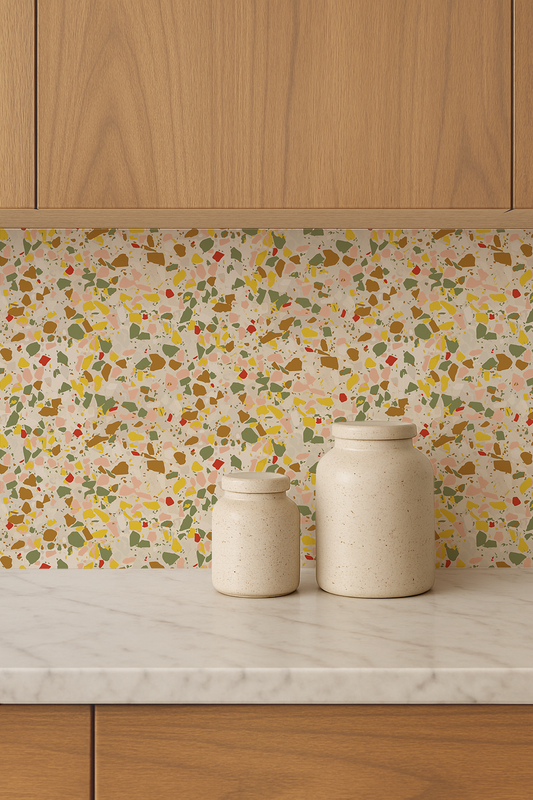 Terrazzo Confetti Contact Paper, neutral olive peach and red