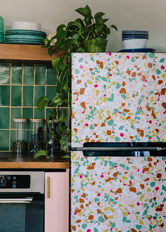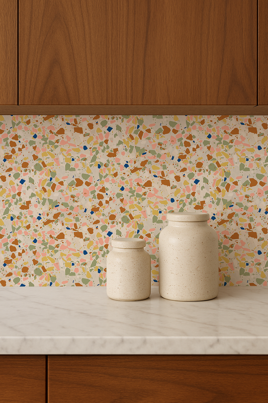 Terrazzo Confetti Contact Paper, neutral pink and teal