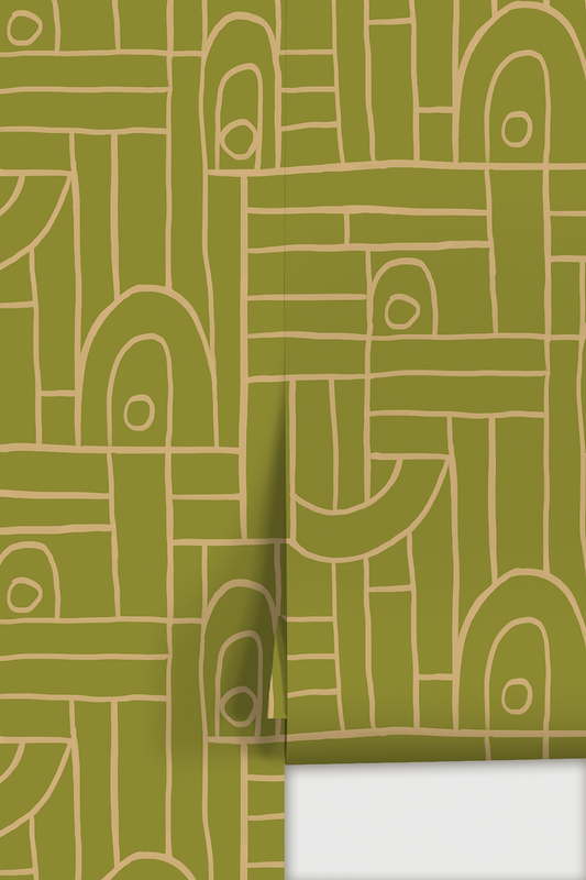 Daisy Chain Stripe Wallpaper, beige and chartreuse green