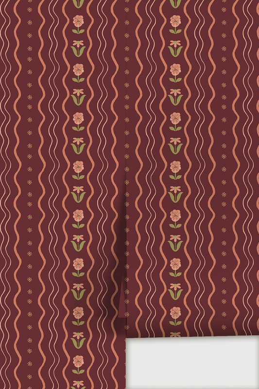 Posy Lane Stripe Wallpaper, beige and terra cotta