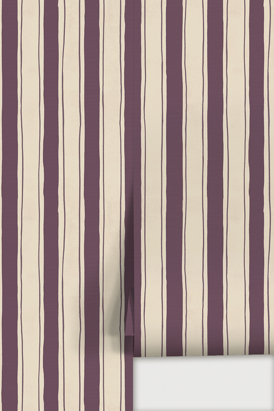 Posy Lane Stripe Wallpaper, beige and plum purple