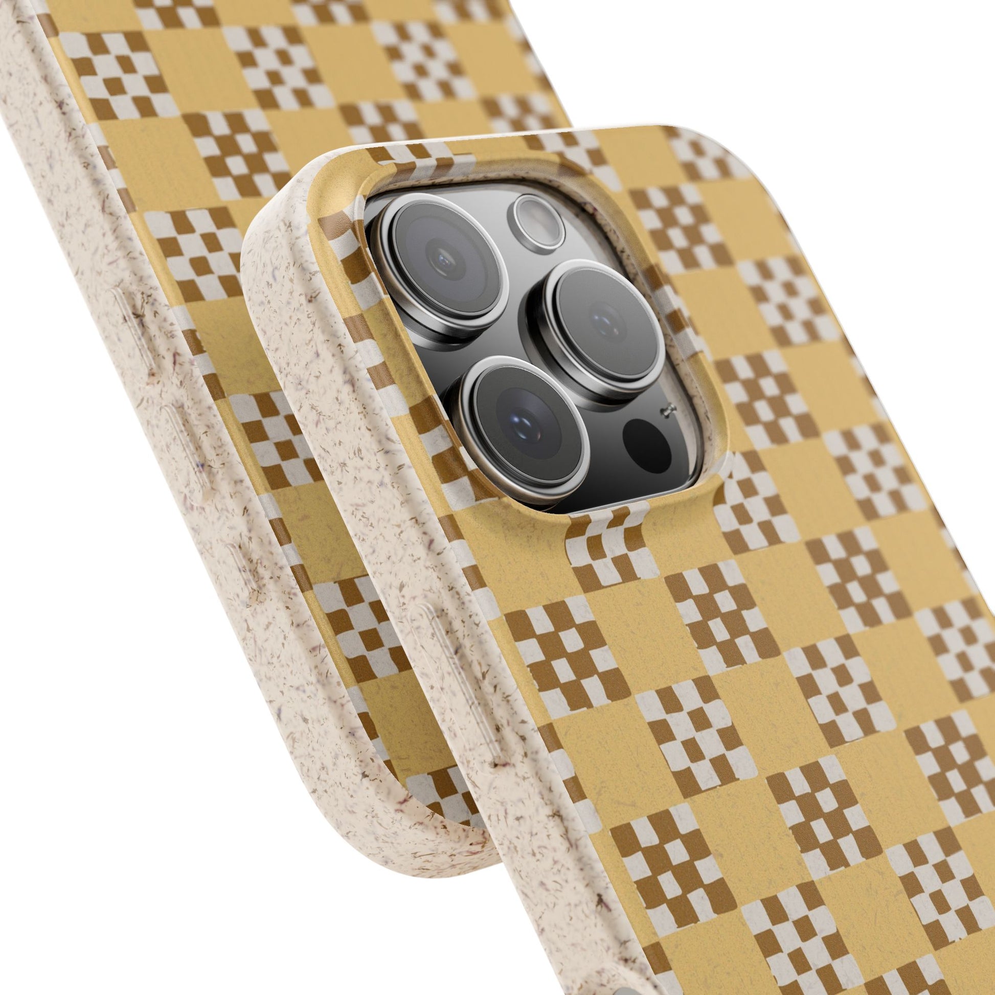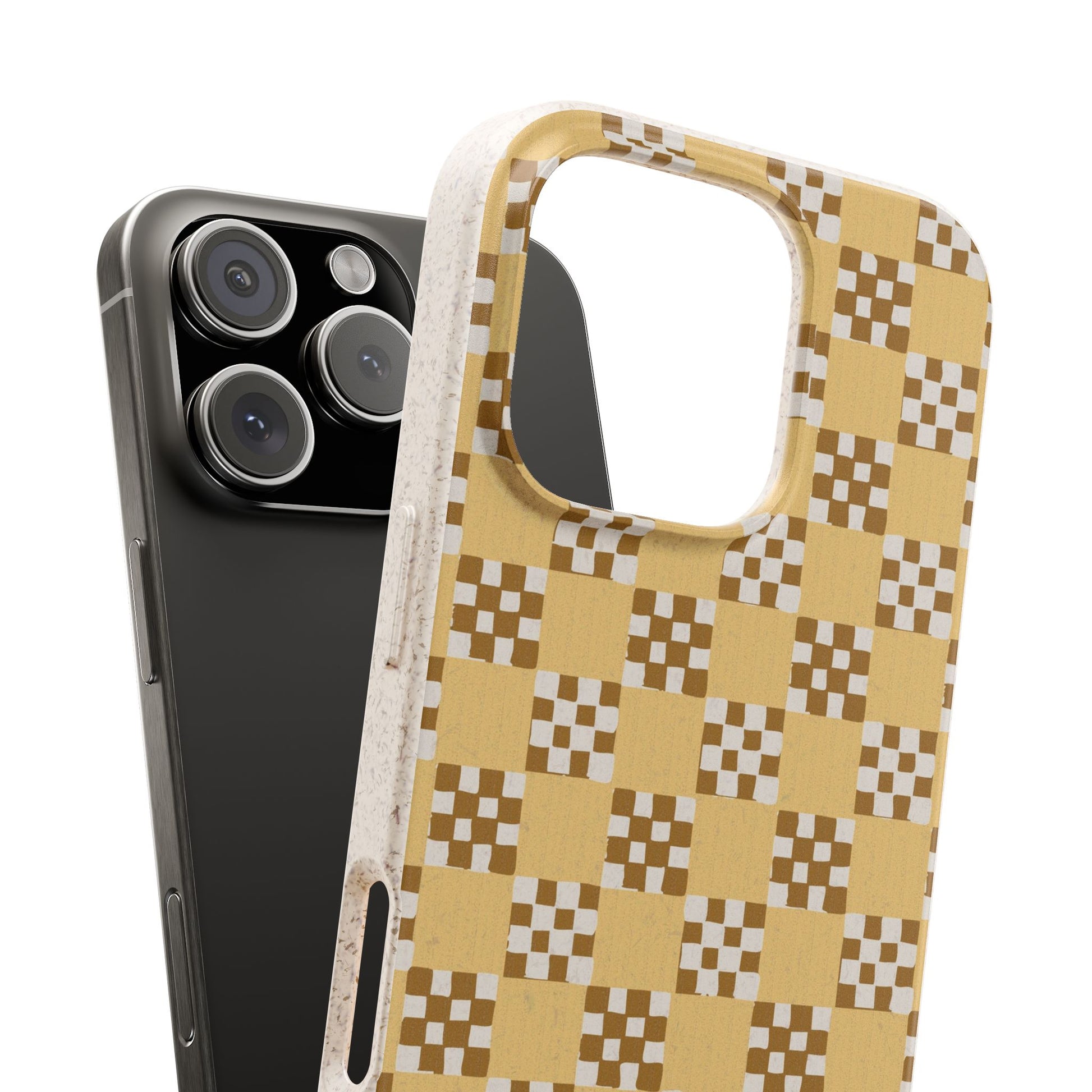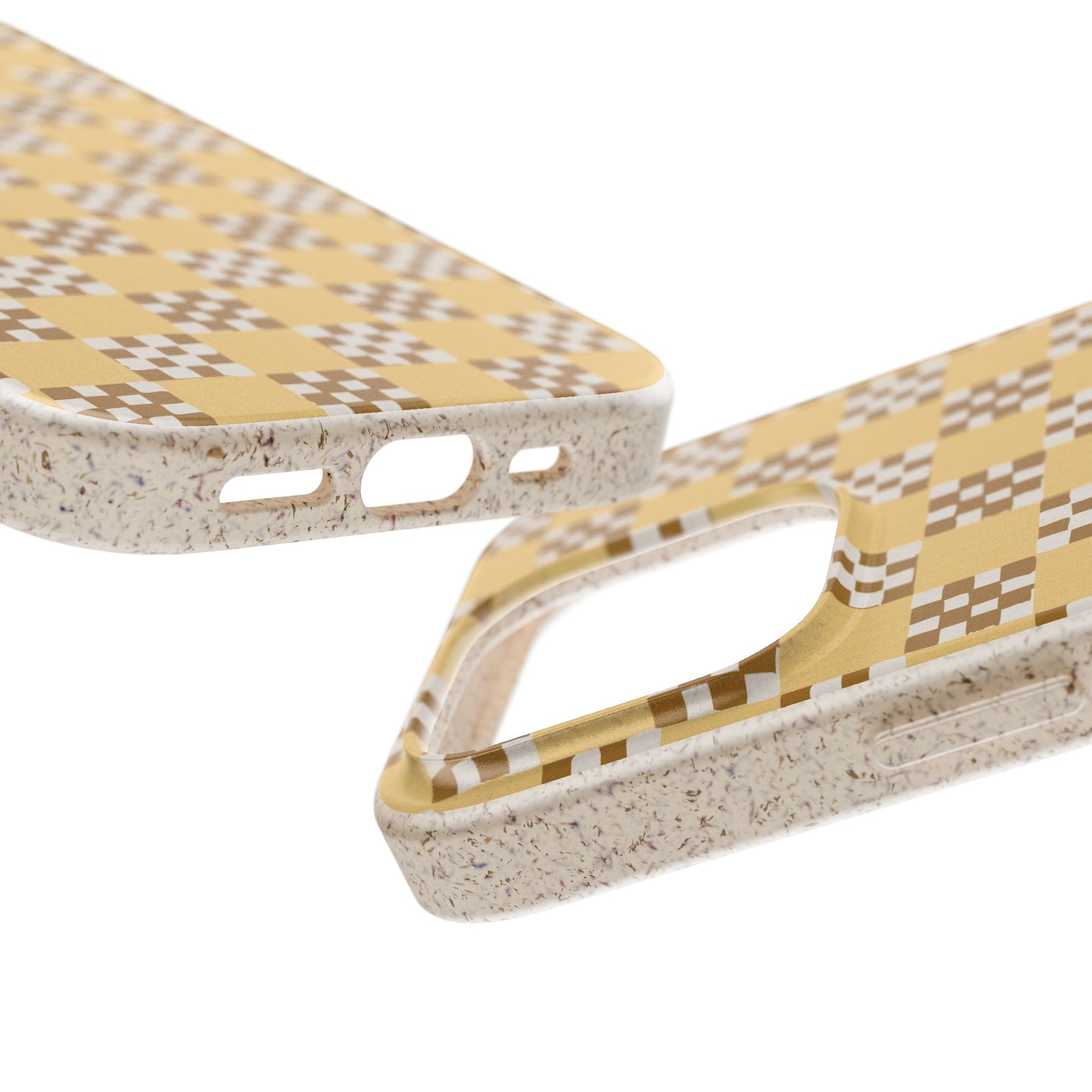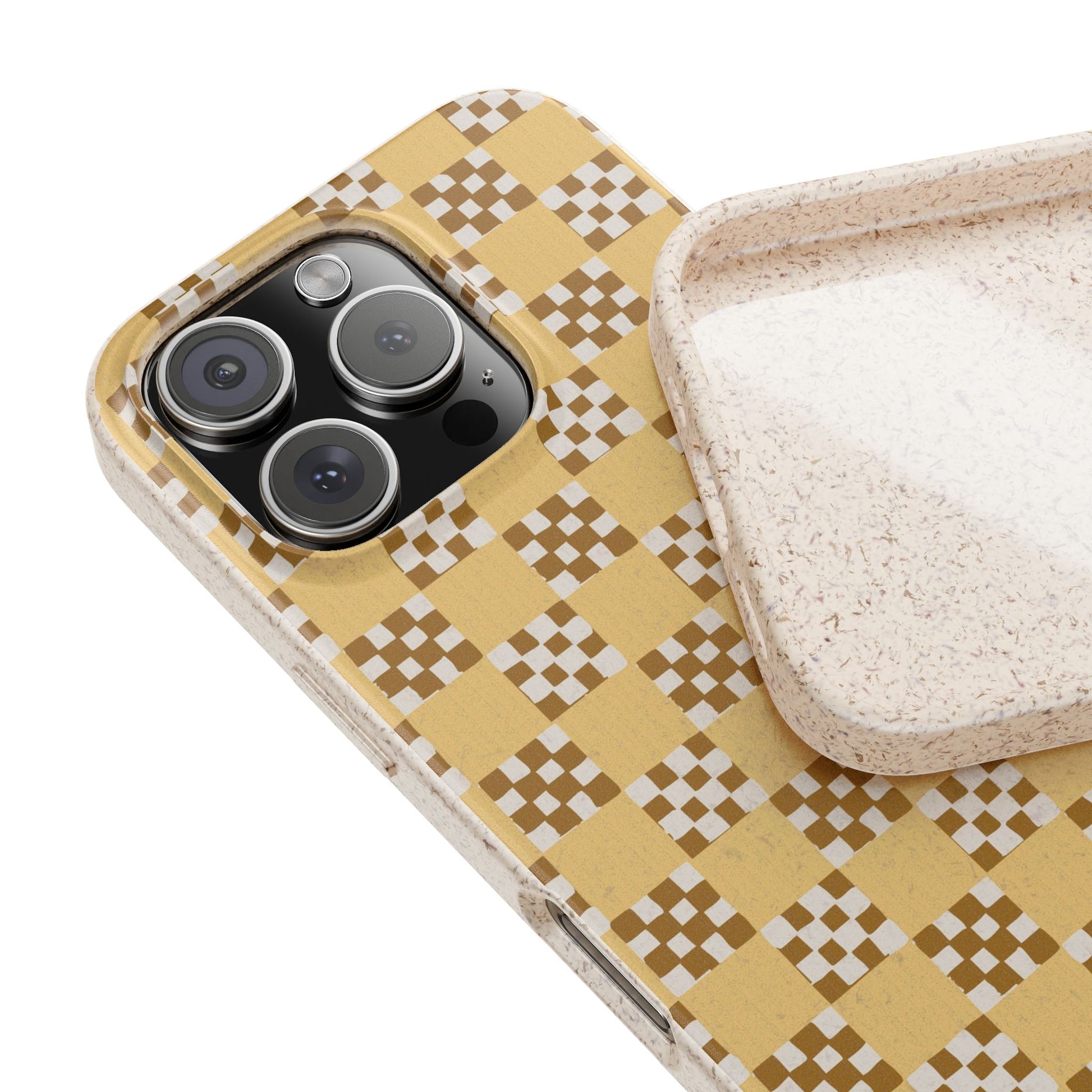 Checkered Quilt Phone Case - butter yellow, ocher and white - Eco-Friendly, Biodegradable