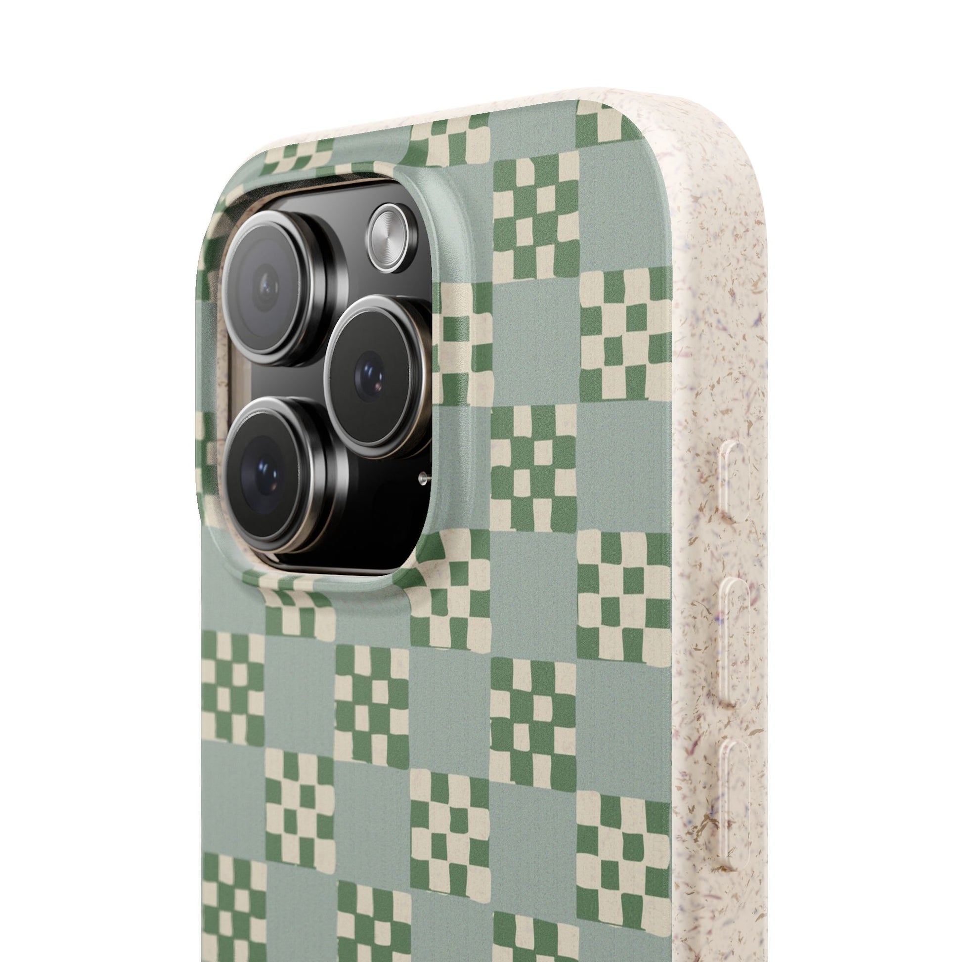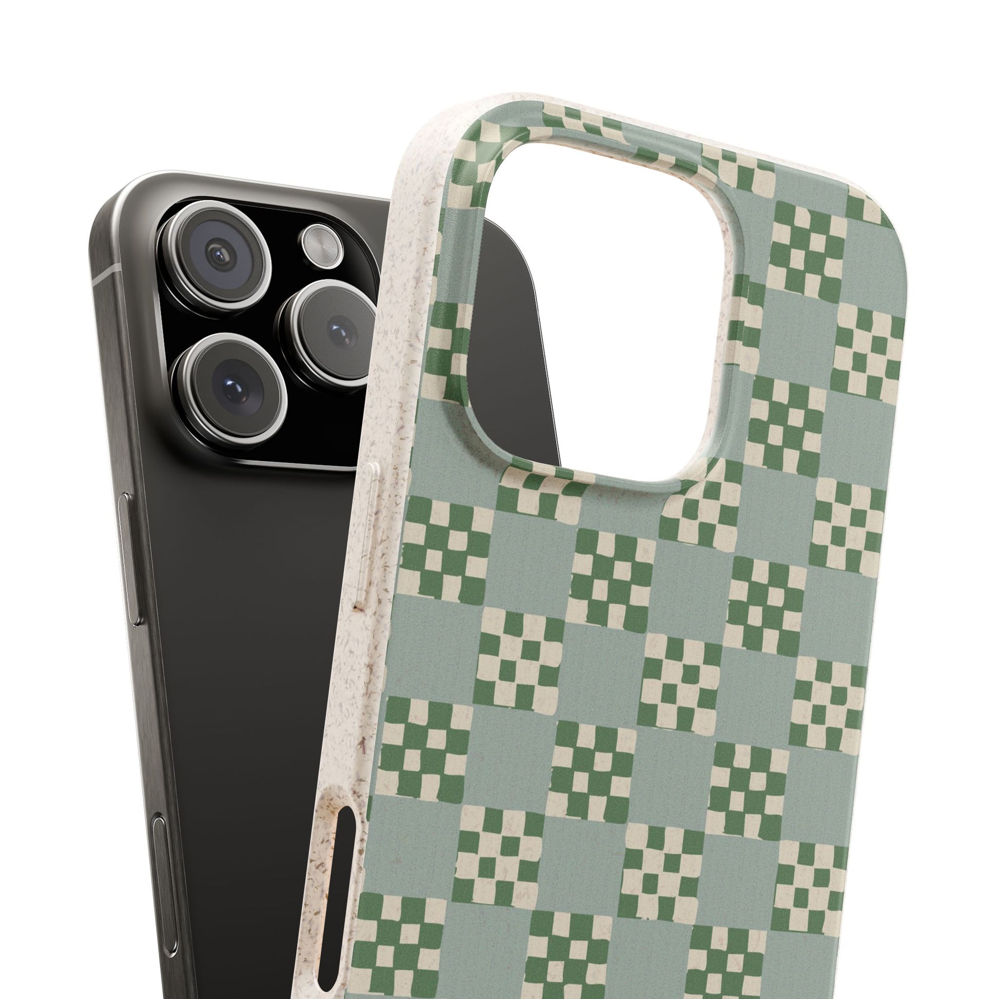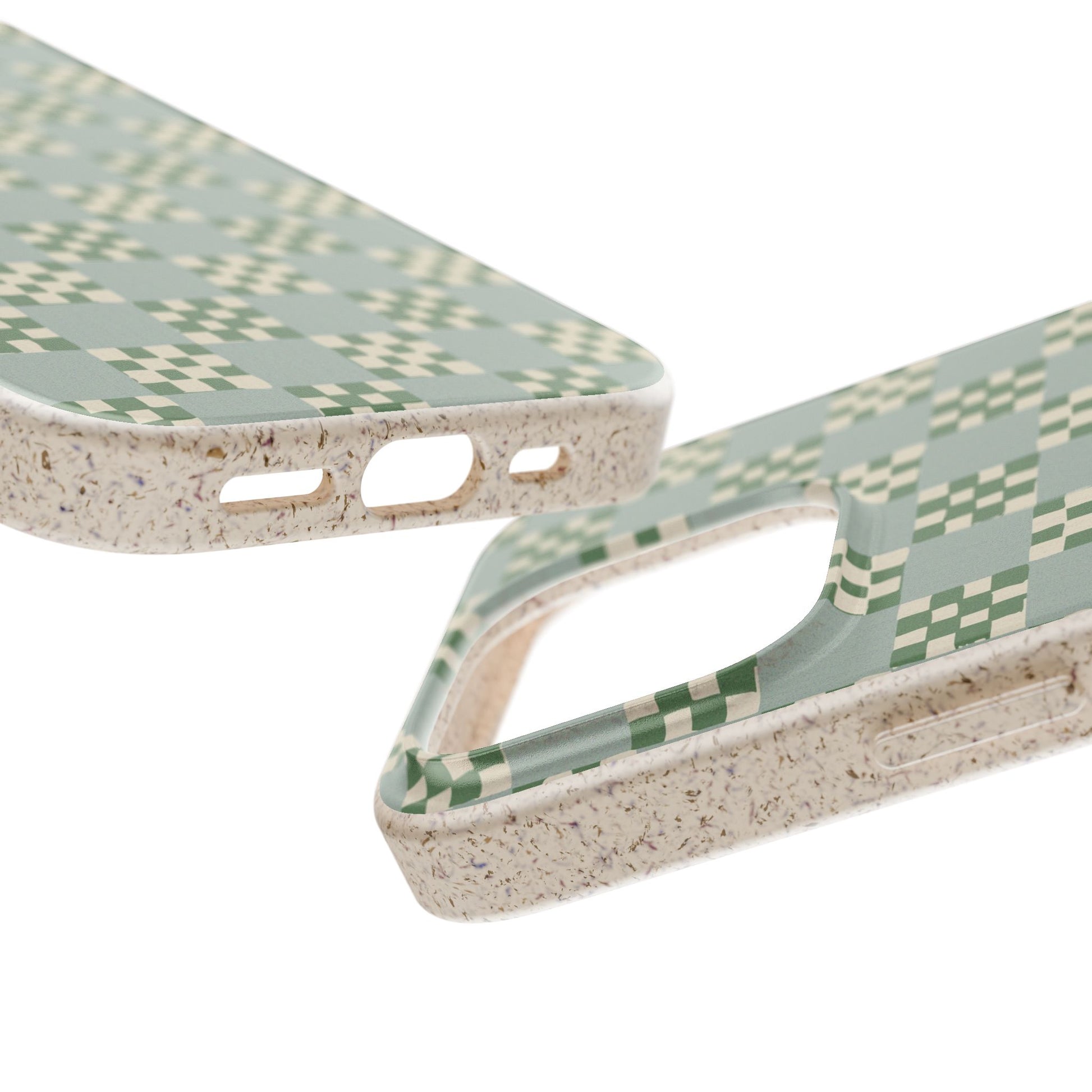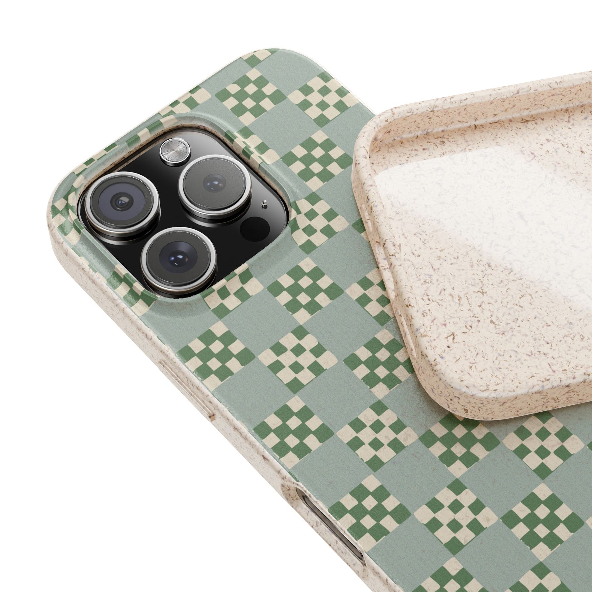 Checkered Quilt Phone Case - mint, sage and white - Eco-Friendly, Biodegradable