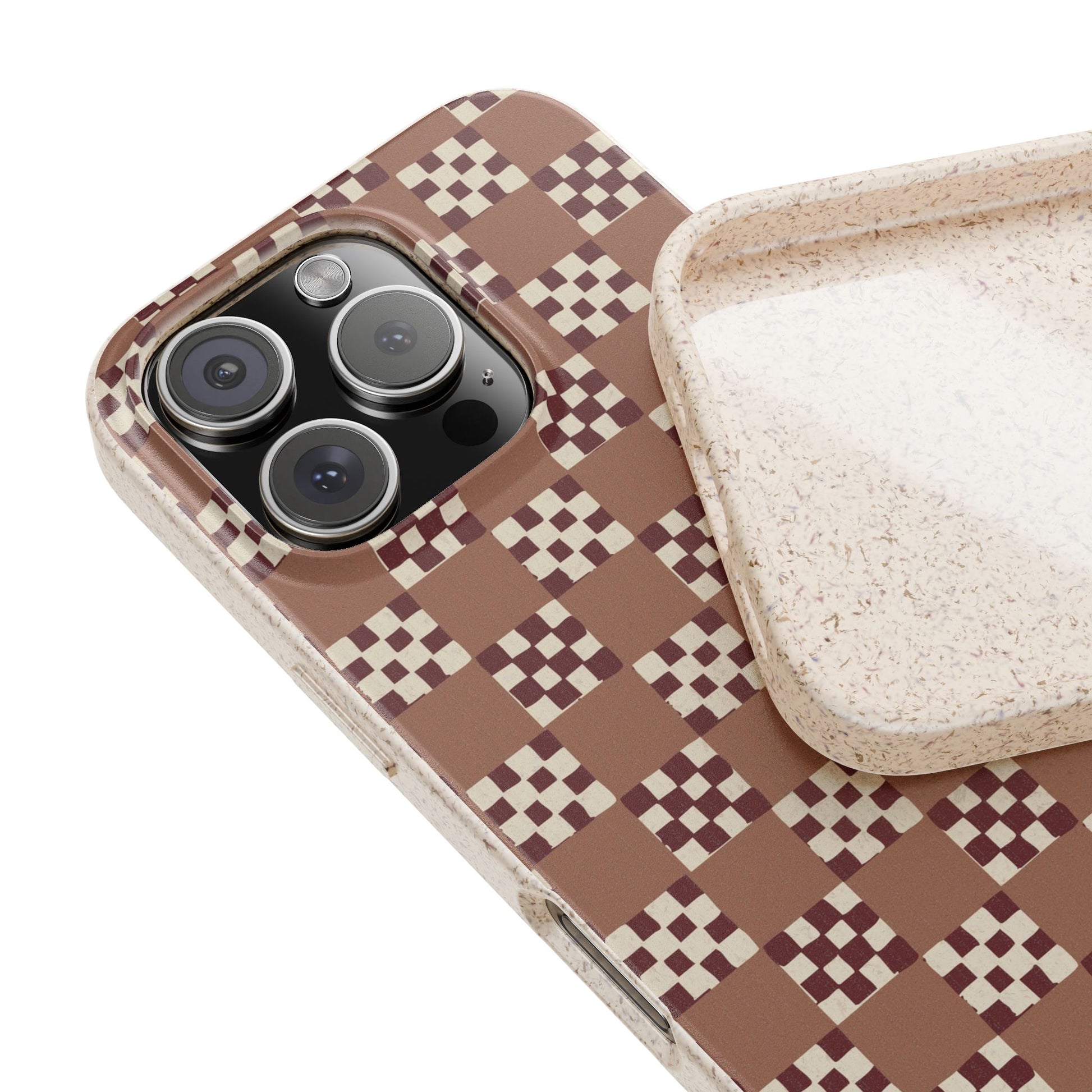 Checkered Quilt Phone Case - mocha mousse - Eco-Friendly, Biodegradable