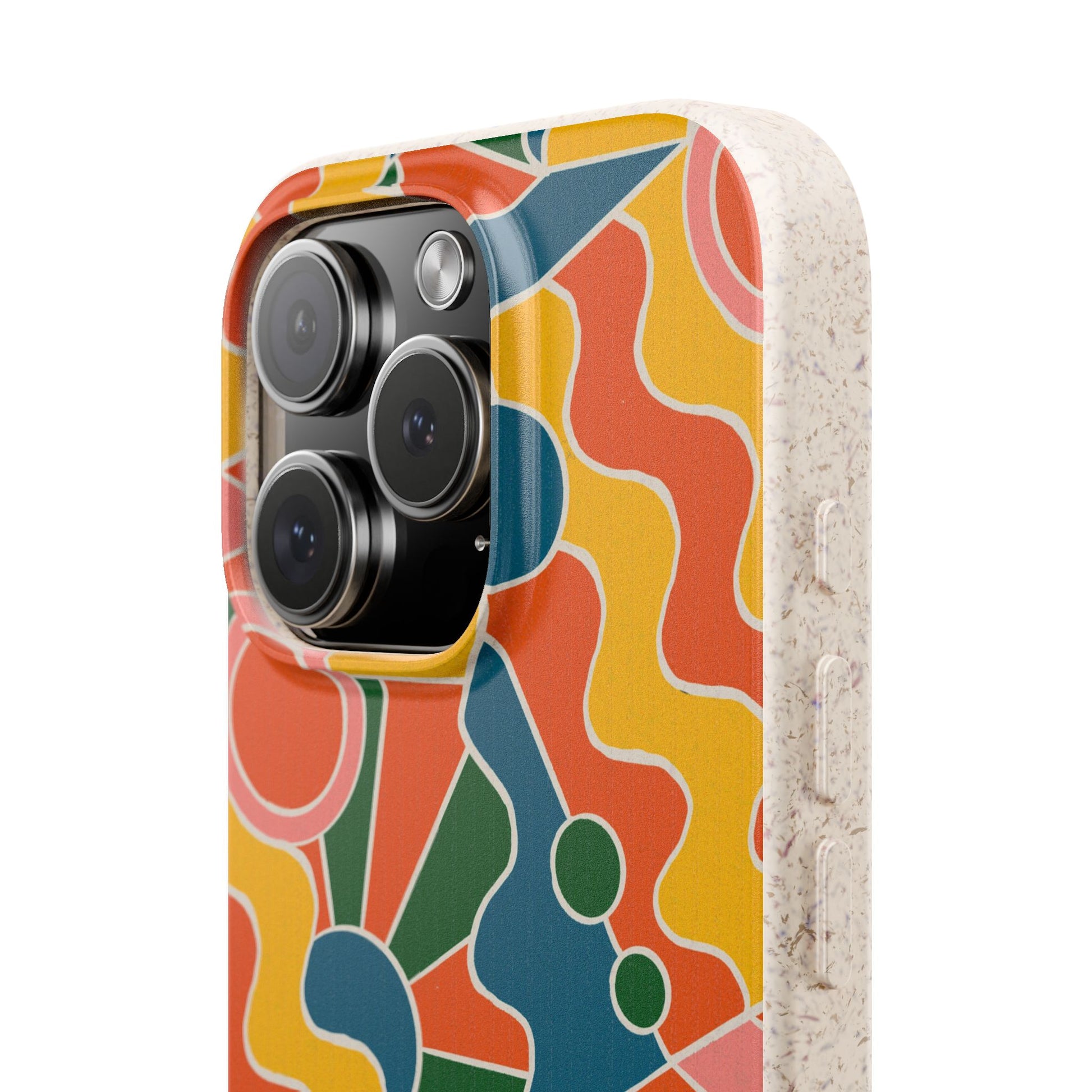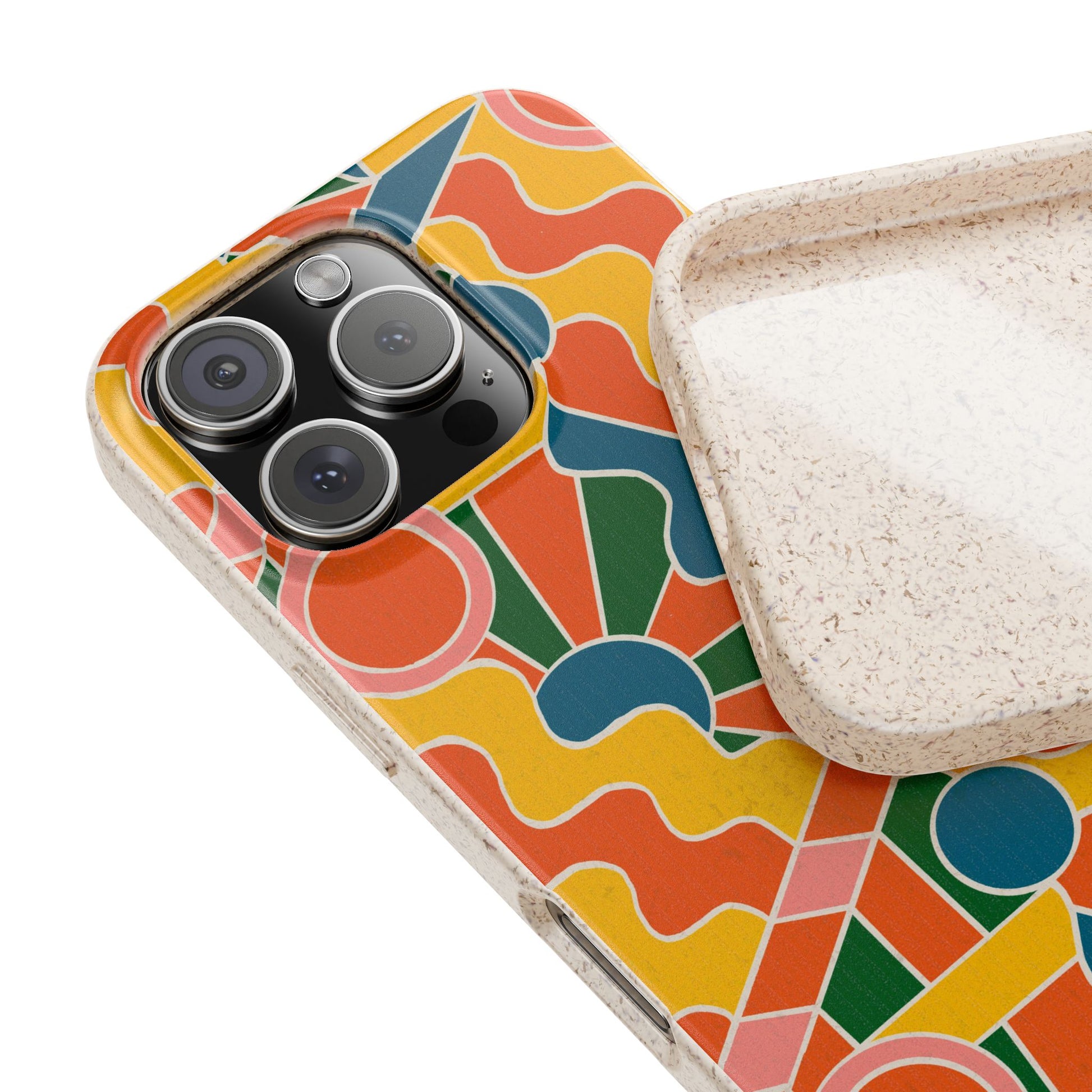 Day Trippin' Phone Case - yellow, orange, pink and green - Eco-Friendly, Biodegradable