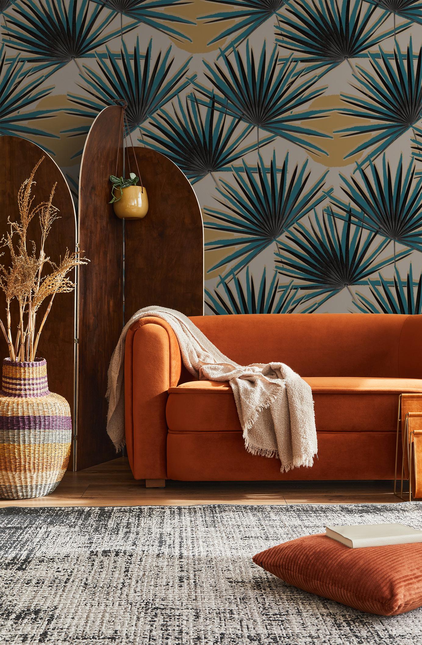 Bring a splash of golden girl charm and Palm Springs flair to your space with our Palm Deco Wallpaper in vibrant blue and orange. Illustrated by Samantha Santana, this stylish design adds a playful yet sophisticated touch to any room. Choose between easy peel-and-stick vinyl for quick application or smooth traditional paste for a classic finish. Plus, it’s completely removable, making it perfect for renters or anyone who loves to refresh their decor with ease.