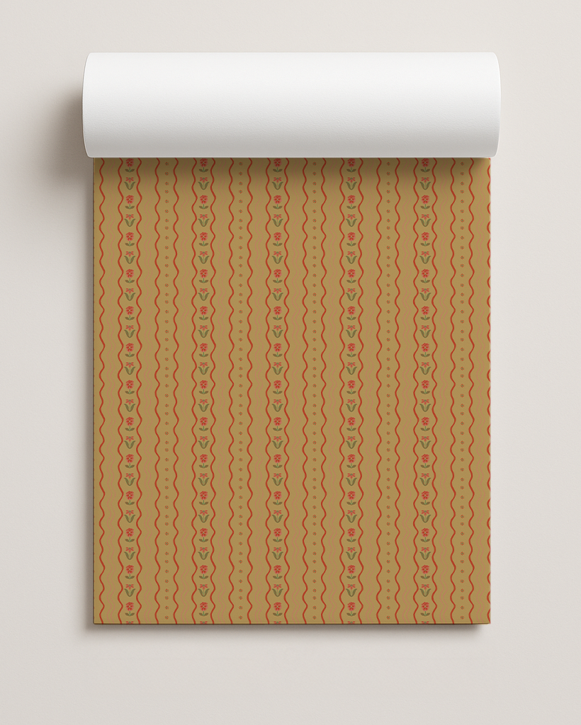 Celebrate the season with this festive Christmas gift wrap featuring Samantha Santana’s Posy Lane design—a playful mix of wavy stripes and floral motifs in rich holiday tones of green and poppy red. This modern yet nostalgic pattern brings a touch of charm and cheer to every package, making your gifts as beautiful on the outside as they are inside.
