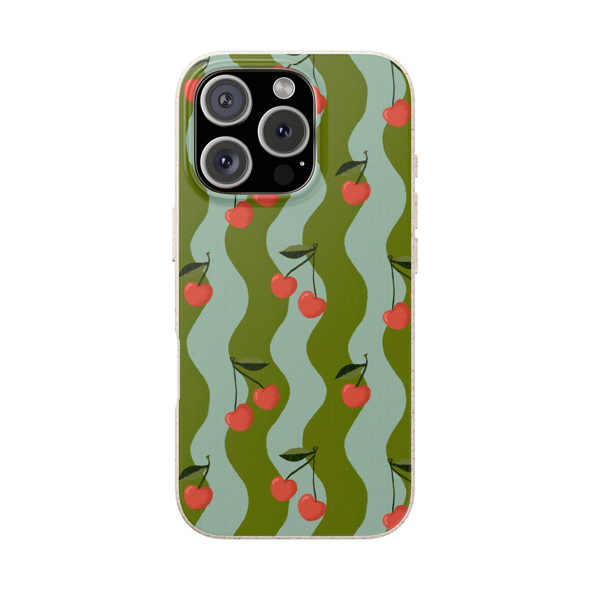 Wavy Cherry Phone Case - teal and green - Eco-Friendly, Biodegradable