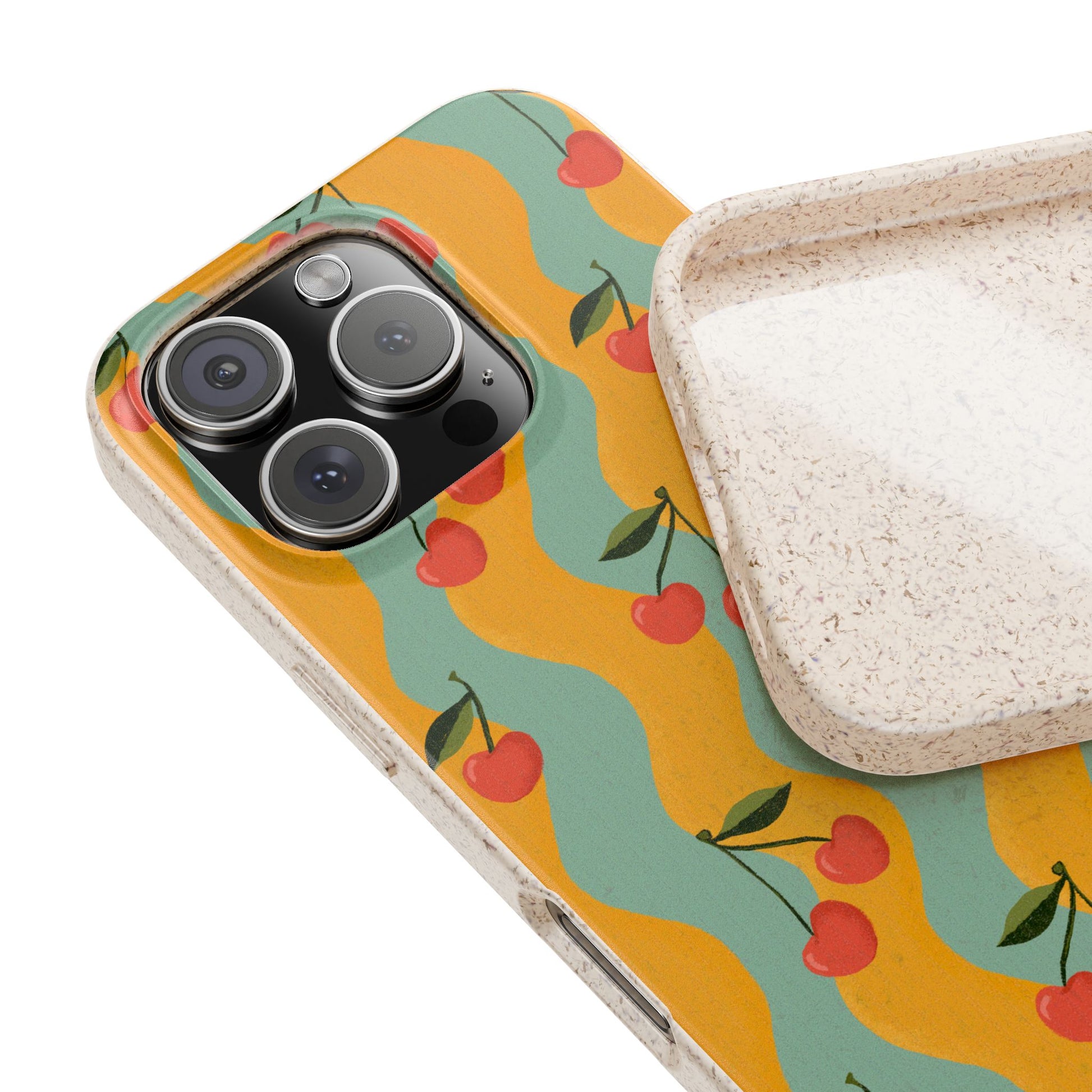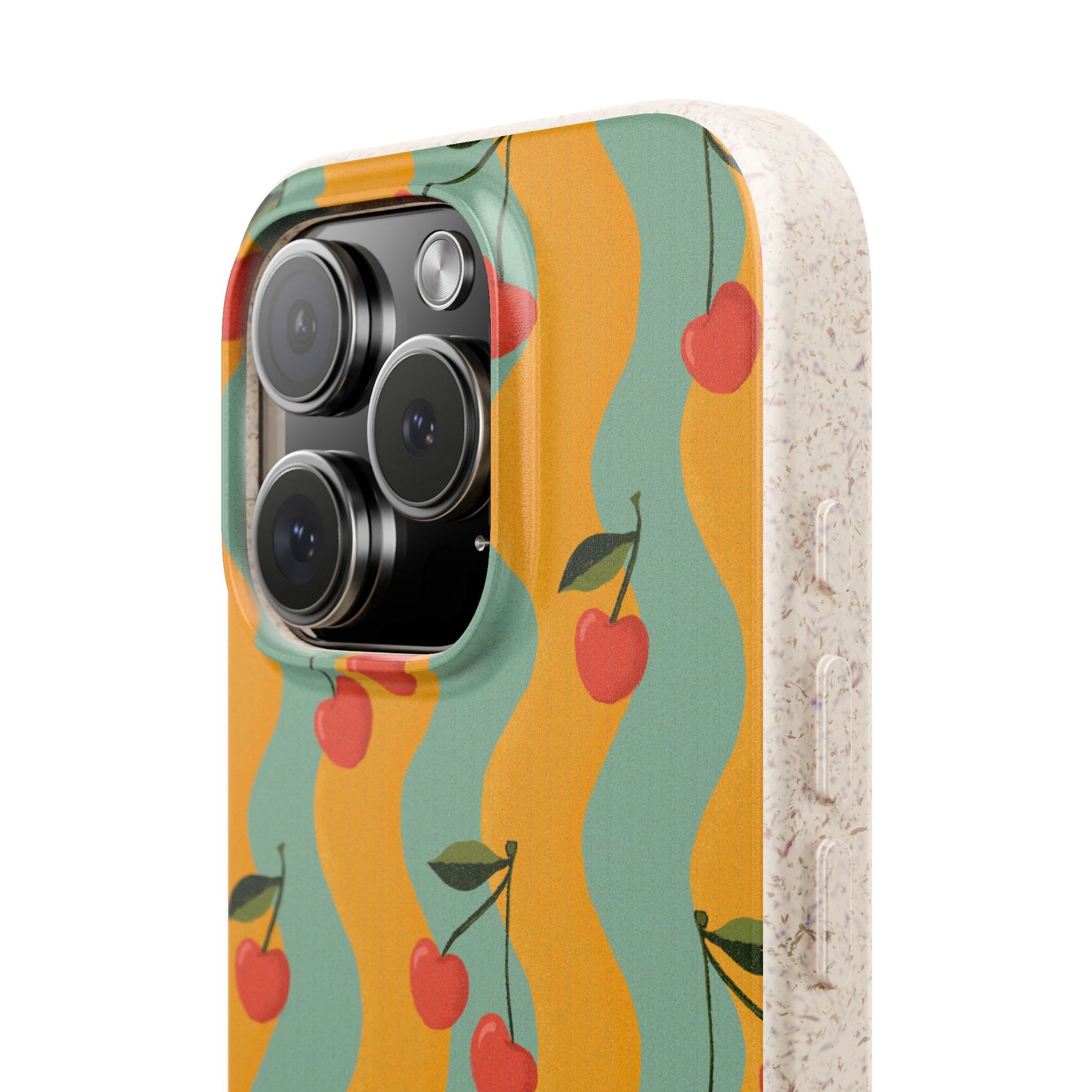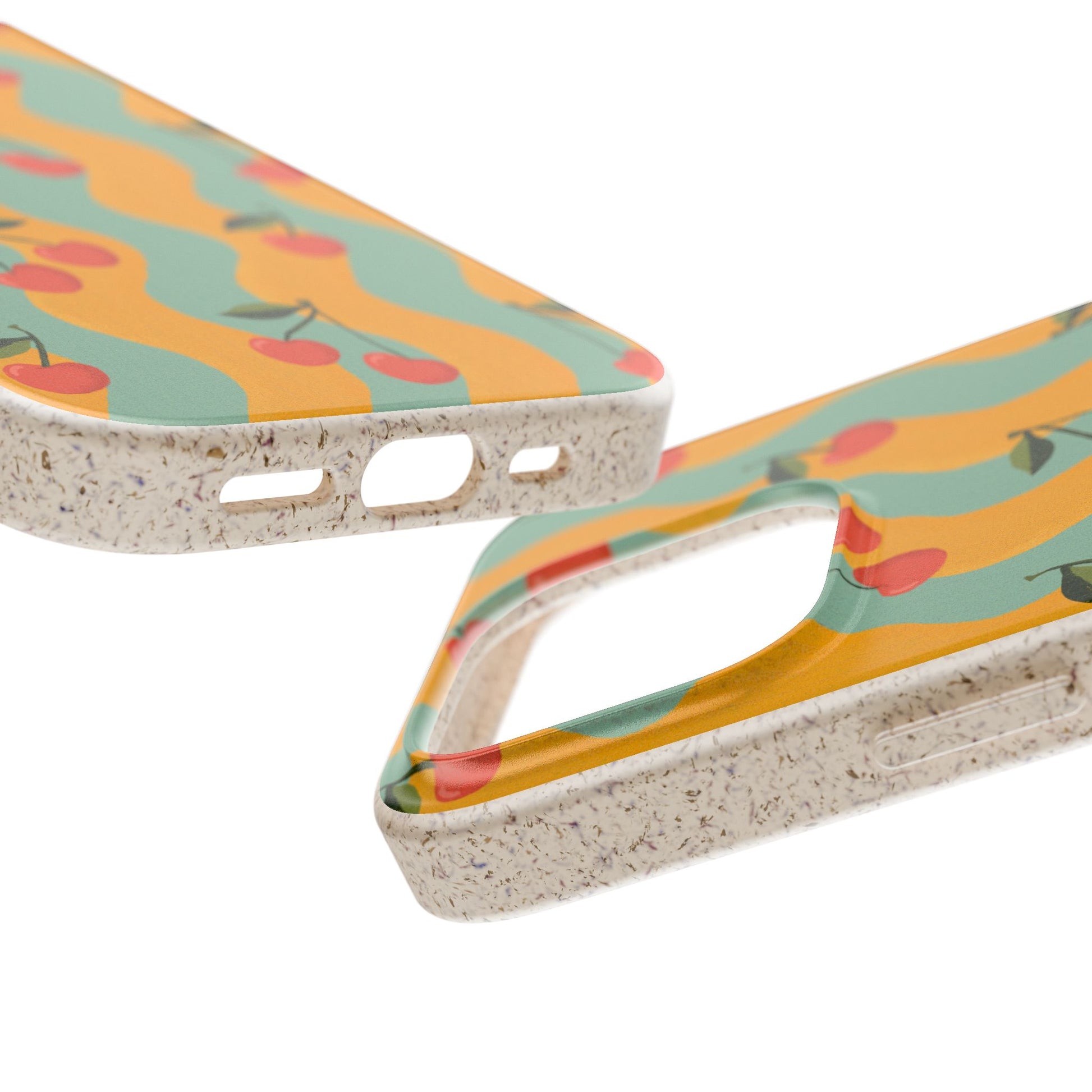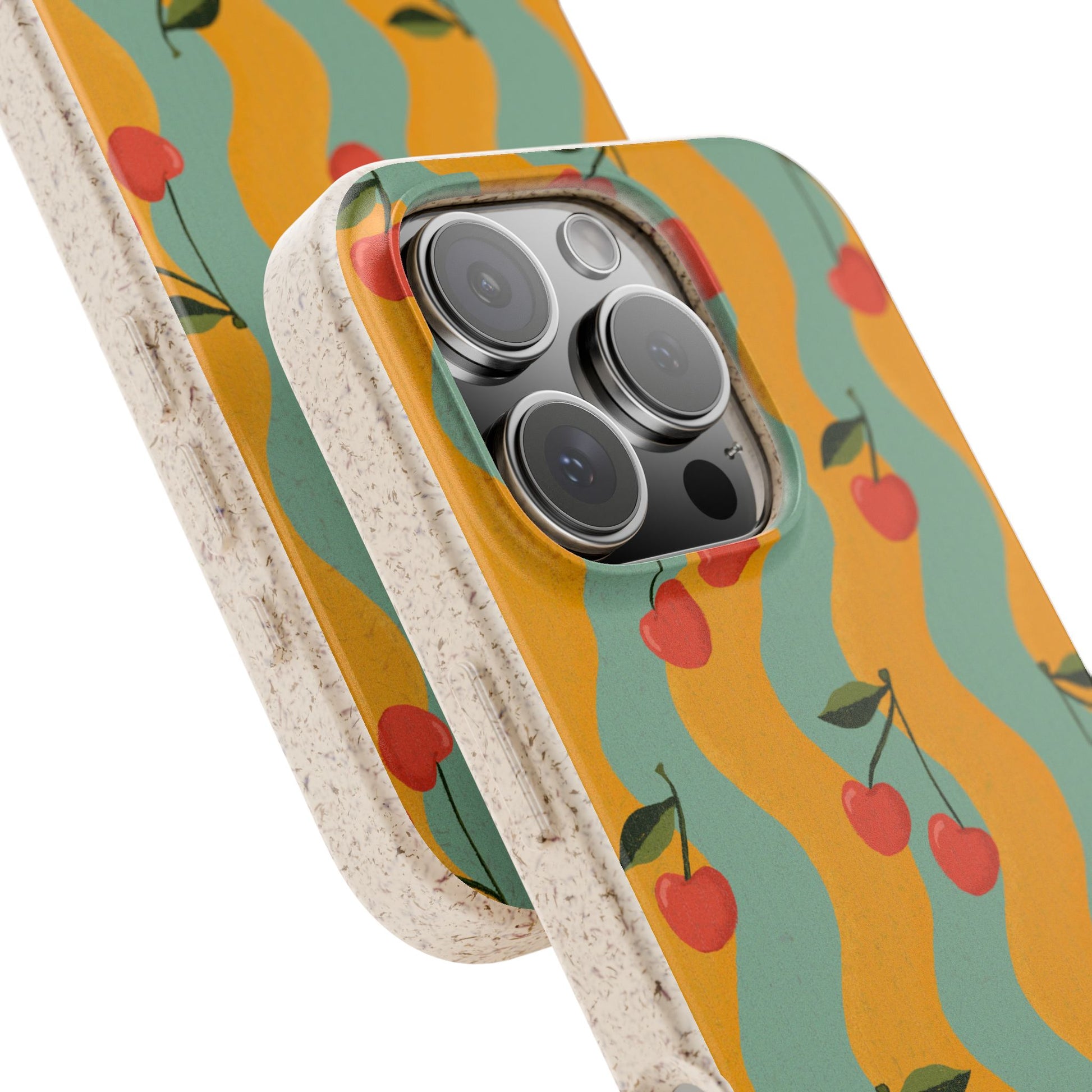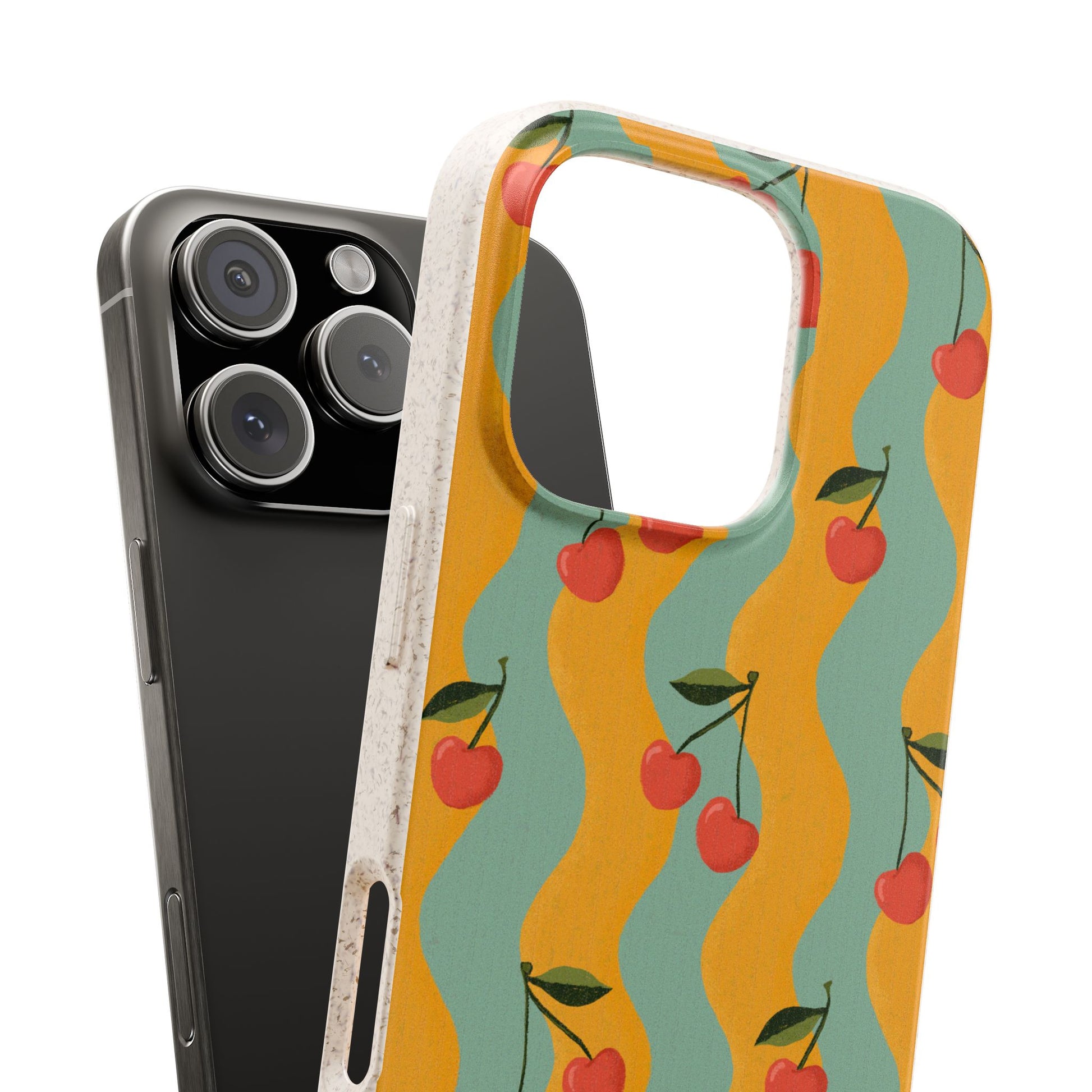 Wavy Cherry Phone Case - teal and yellow - Eco-Friendly, Biodegradable