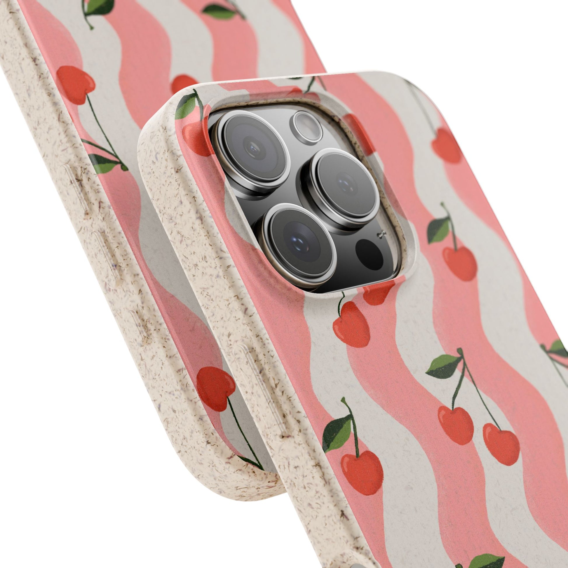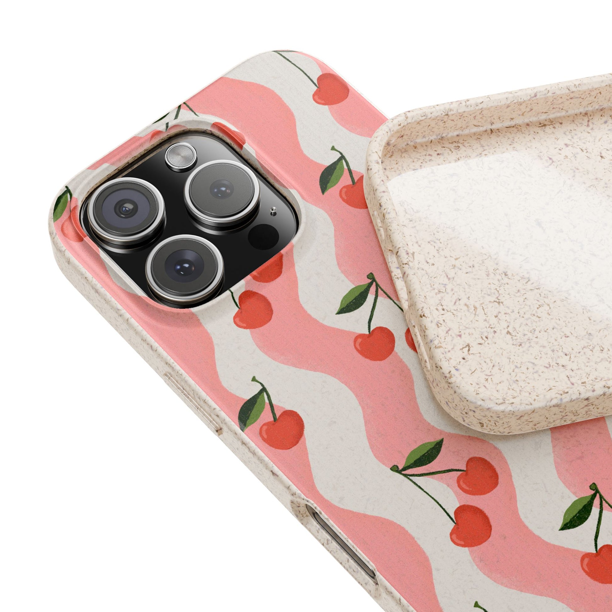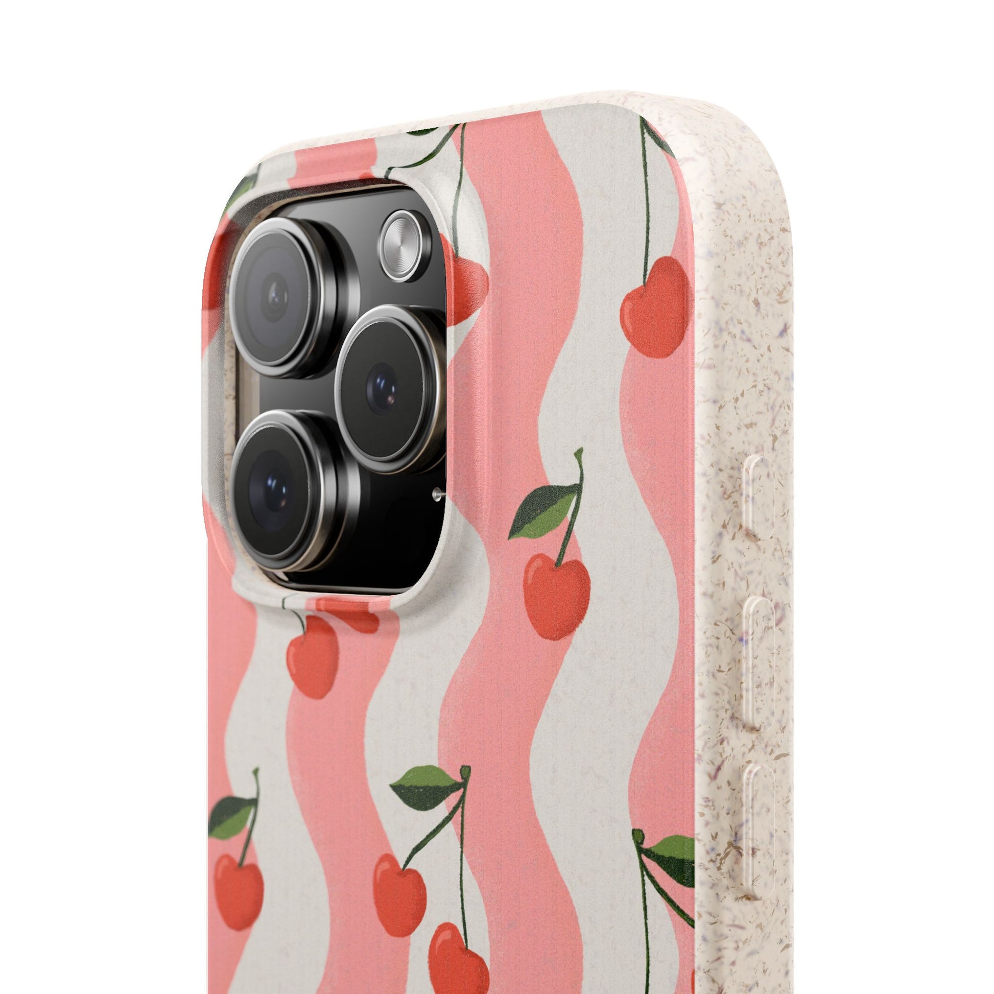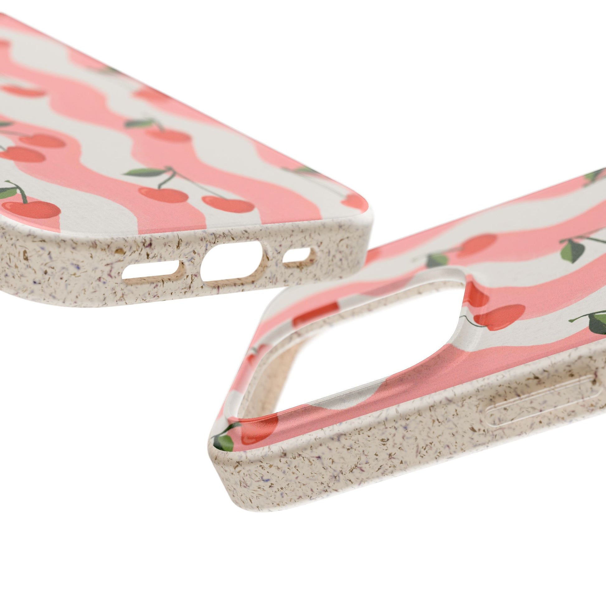 Wavy Cherry Phone Case - white and pink - Eco-Friendly, Biodegradable