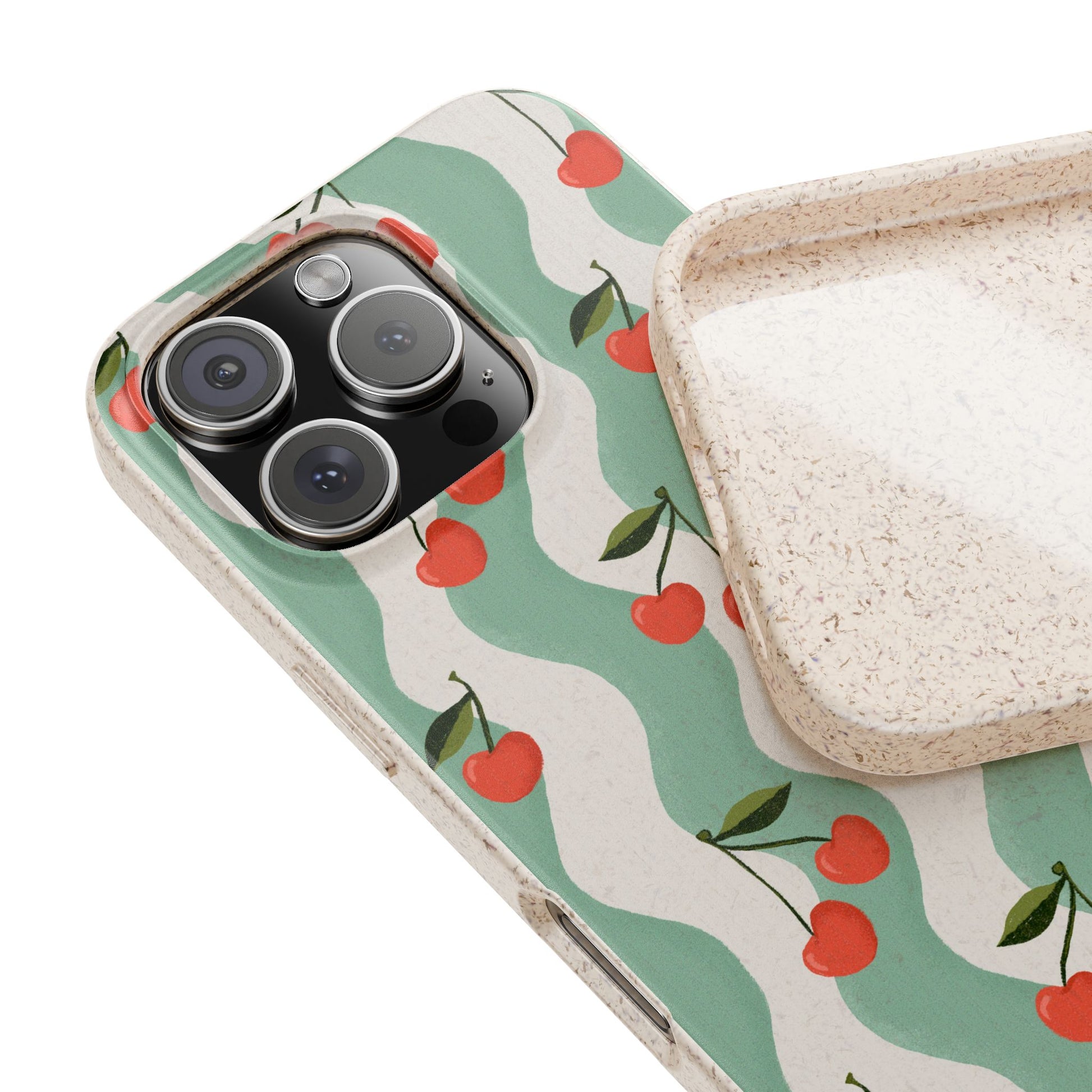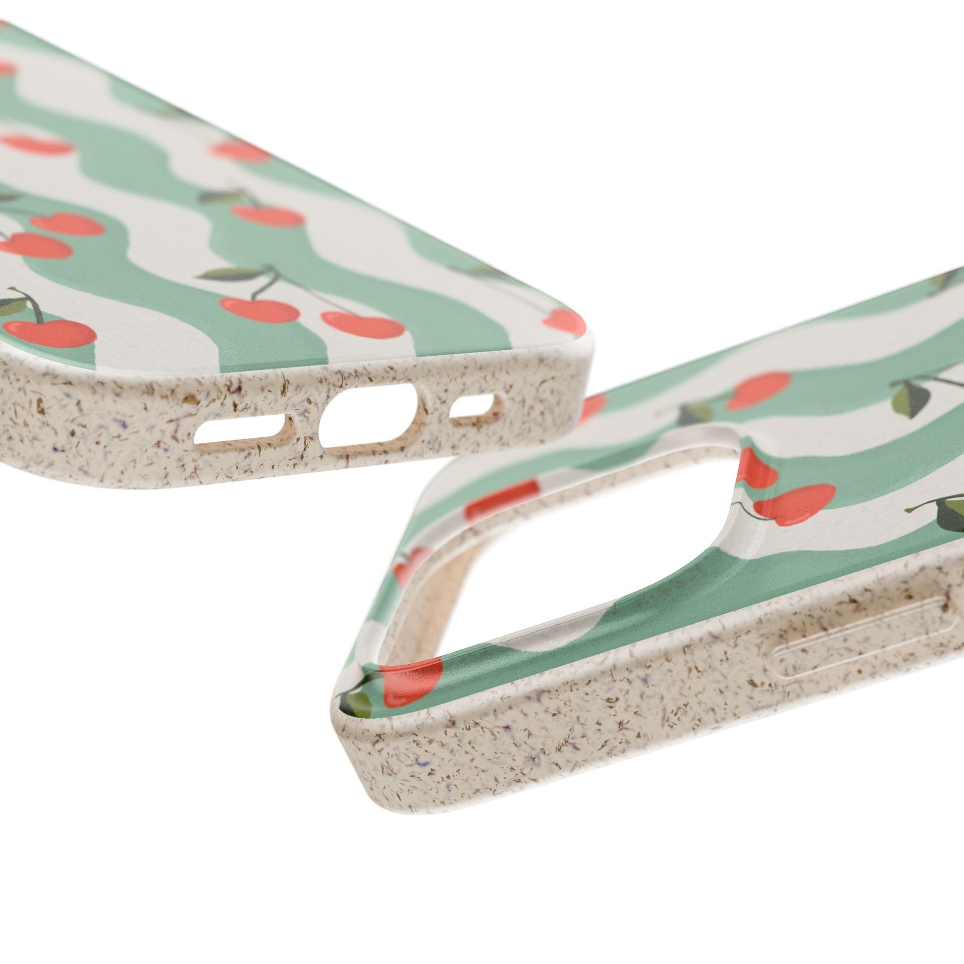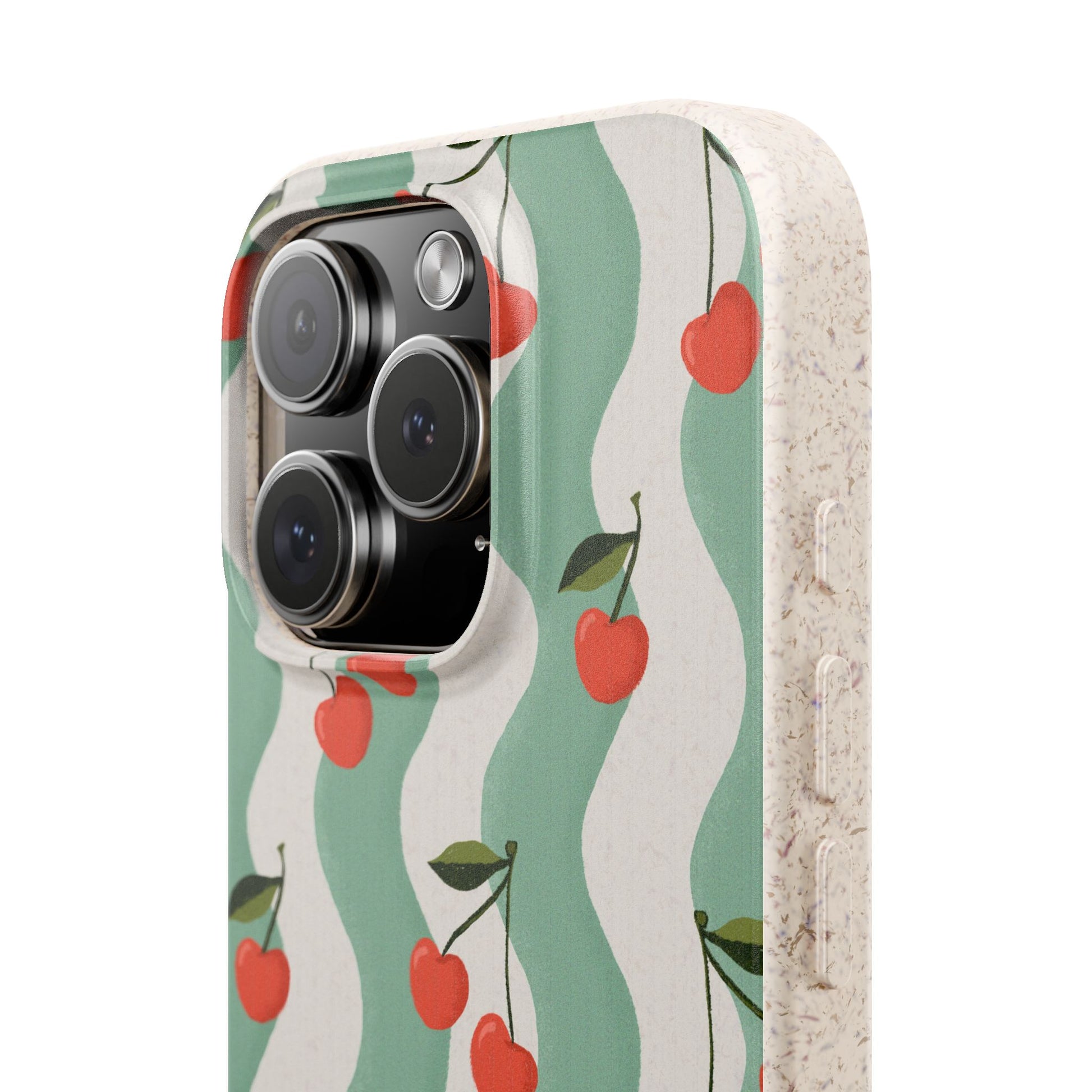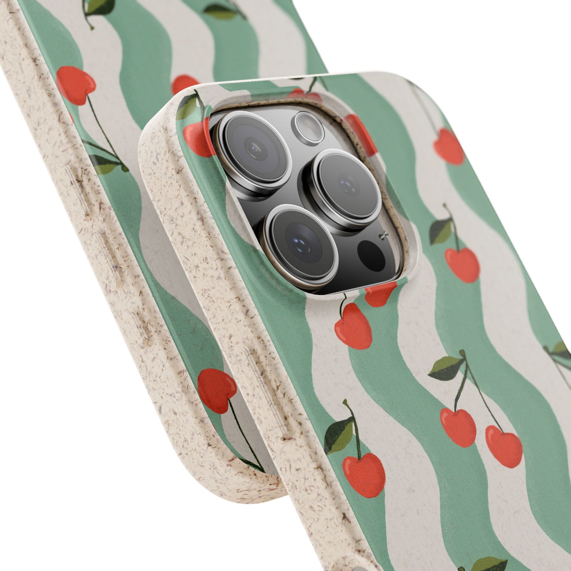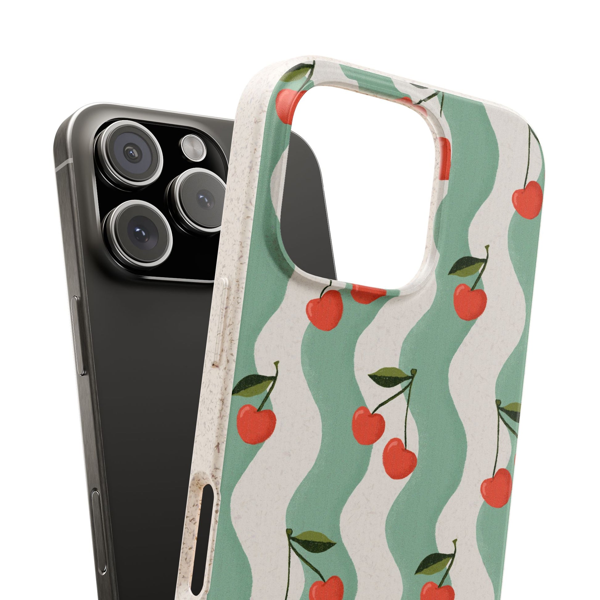 Wavy Cherry Phone Case - white and teal - Eco-Friendly, Biodegradable
