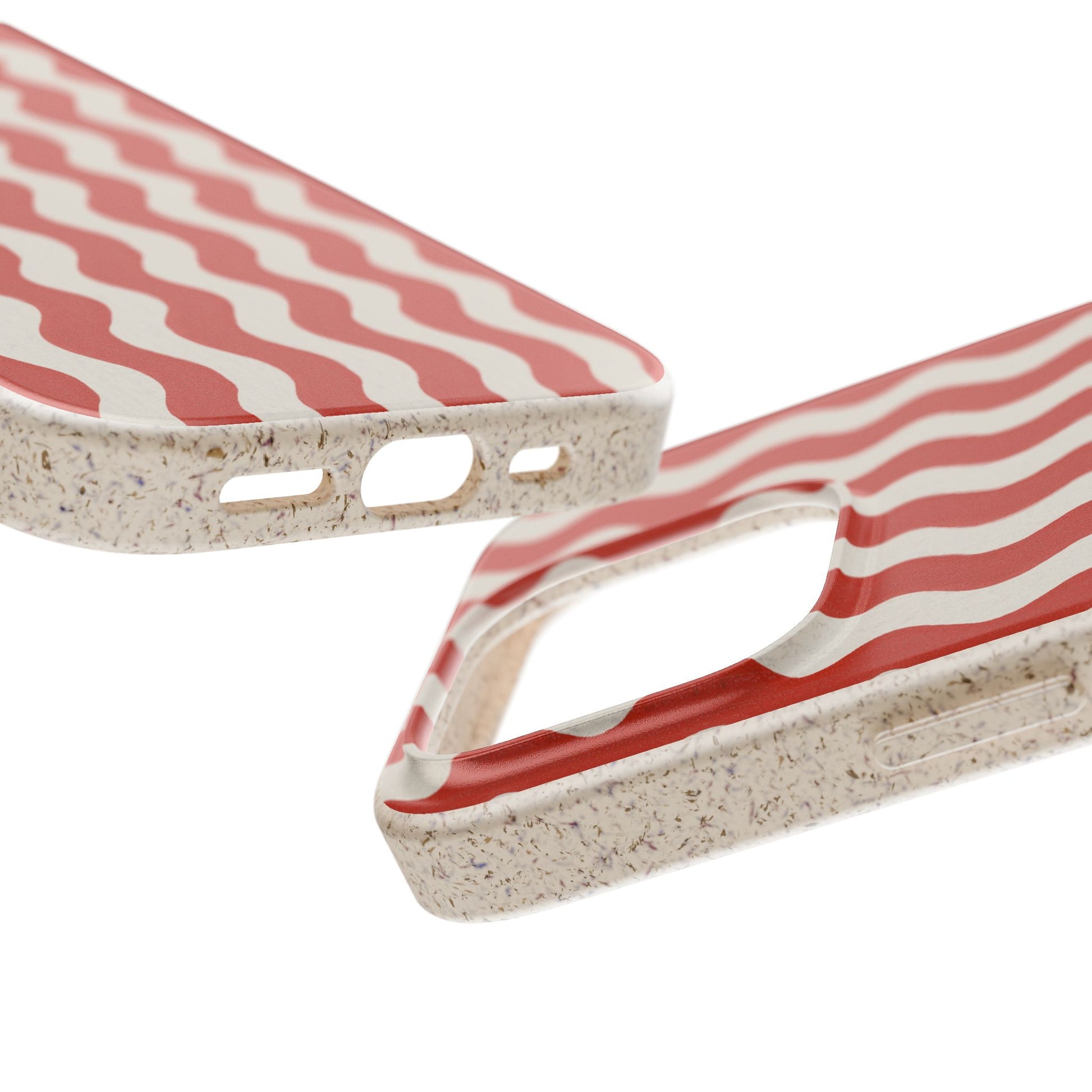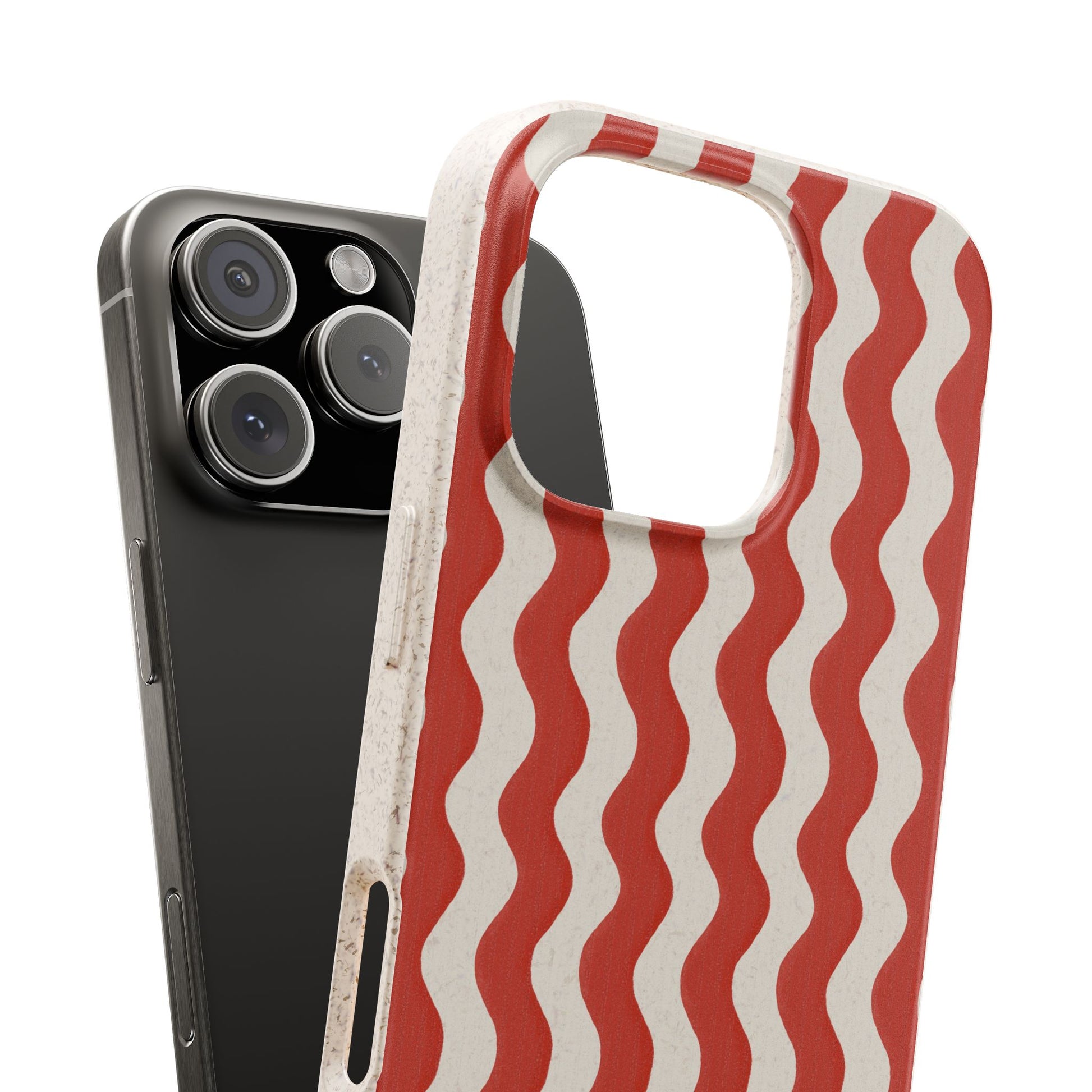 Ziggy Stripe Phone Case - white and brick red - Eco-Friendly, Biodegradable